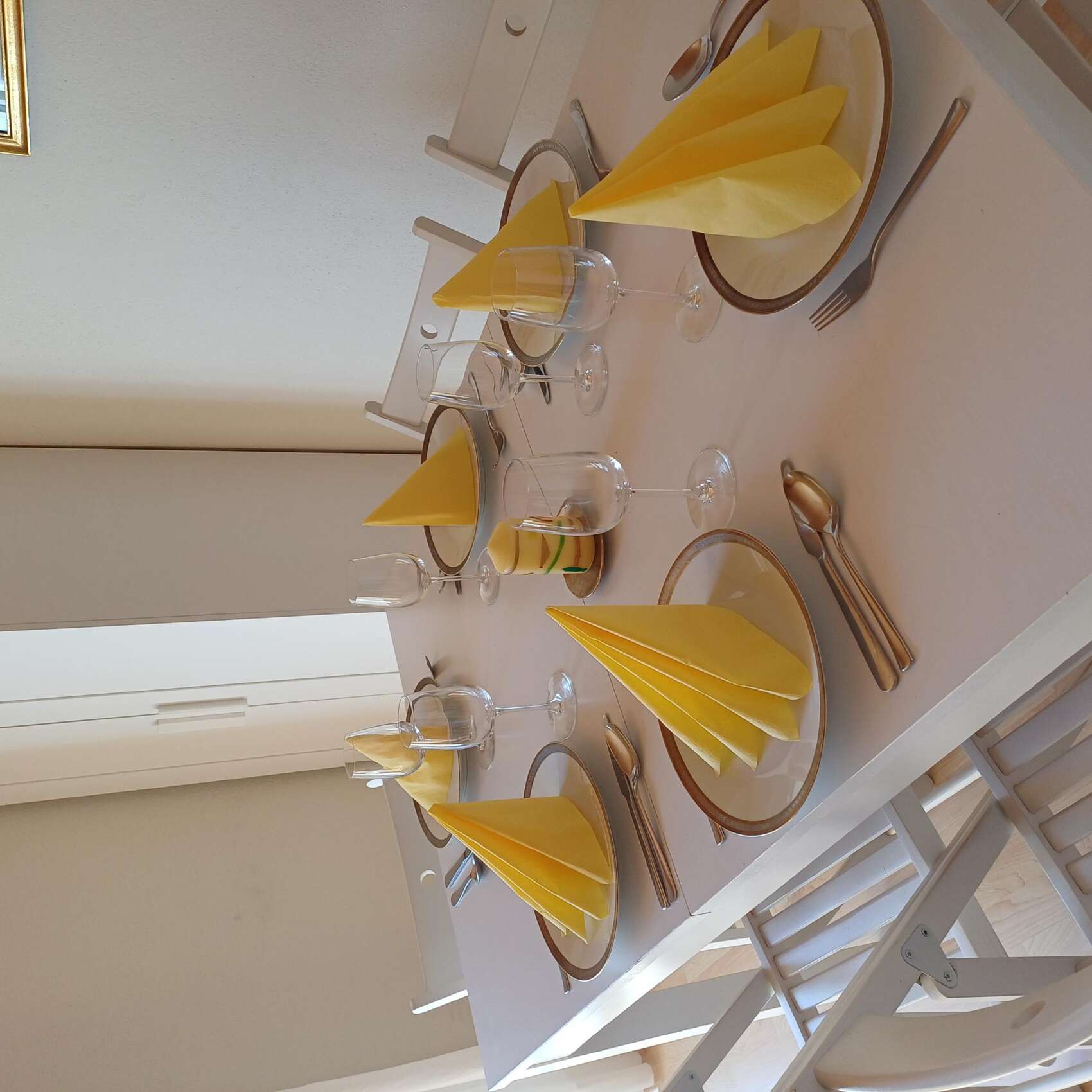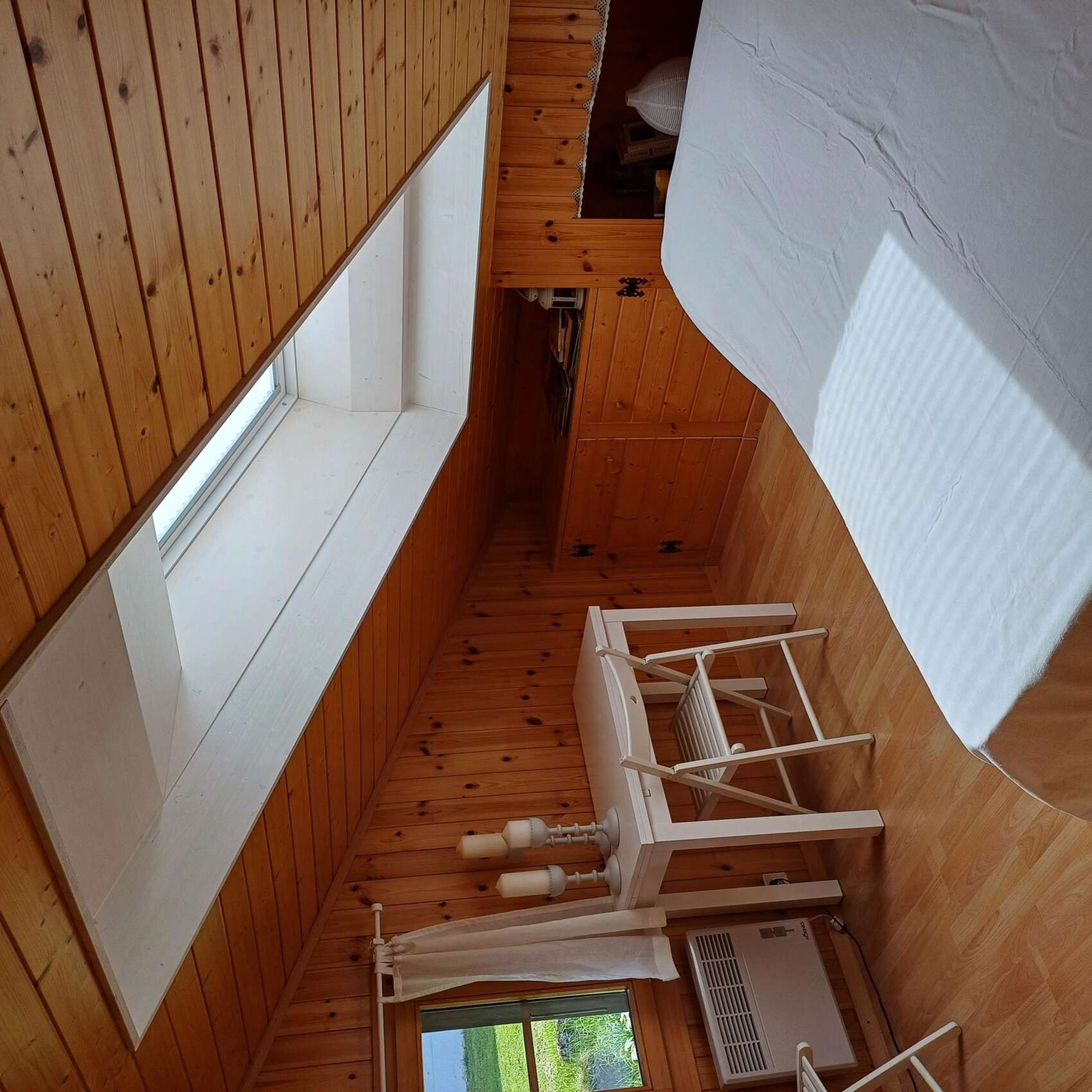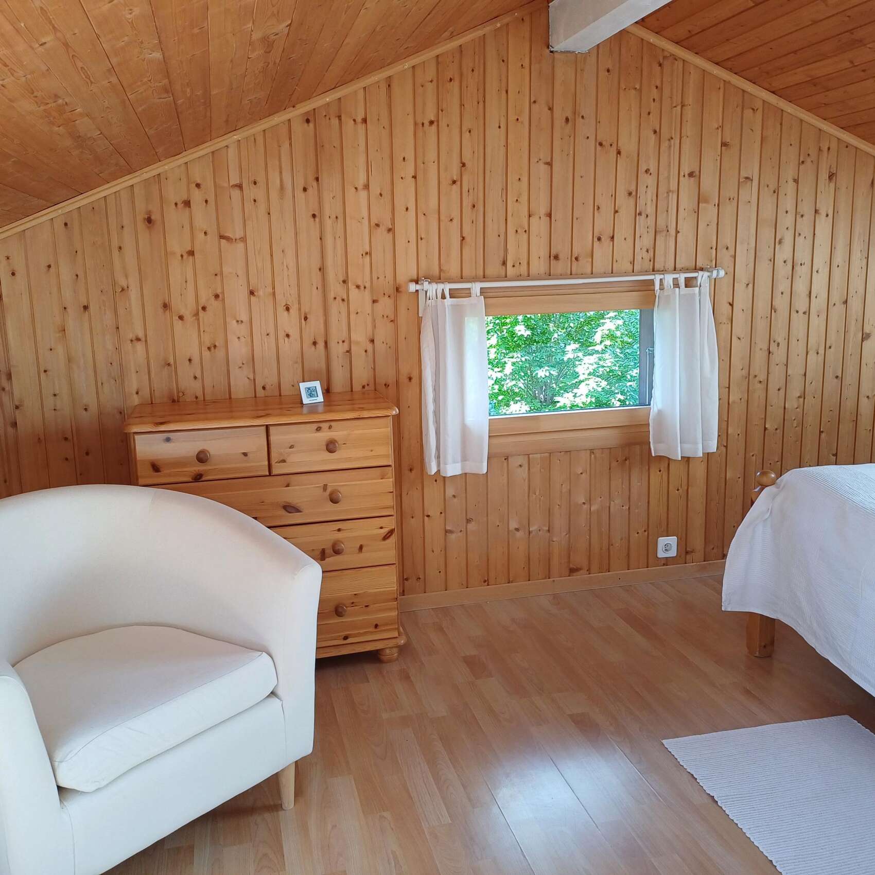 Einrichtung Obergeschoss: 1 Schlafzimmer mit Doppelbett, 1 Schlafzimmer mit Doppelbett und 2 Einzelbetten, Ablagemöglichkeiten in Einbauschränken