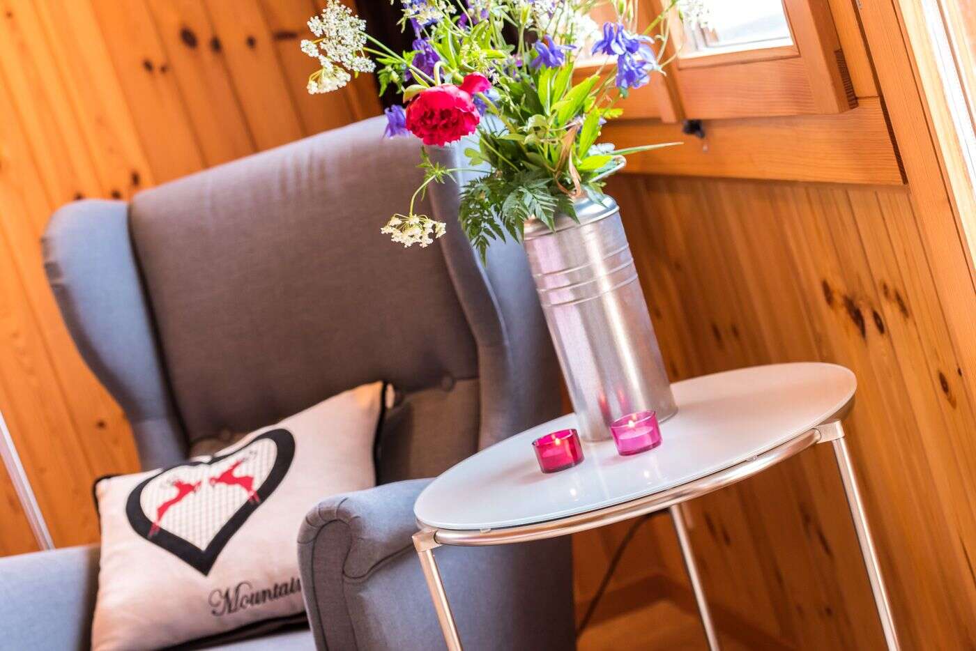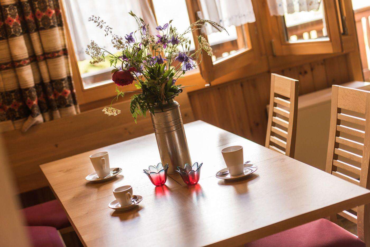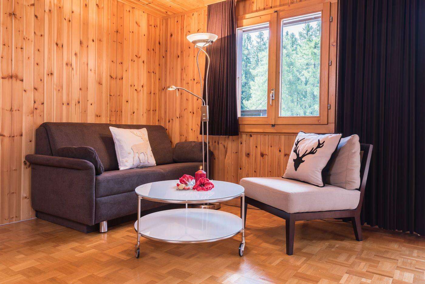 Die Wohnung ist sehr gemütlich mit schönen Holzmöbeln eingerichtet. Die Wände sind holzgetäfelte. In der gesamten Wohnung sorgt während kalten Tagen eine Elektroheizung für ein angenehmes Klima.