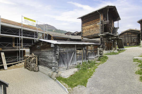 Der Stall «Dorf» befindet sich, wie der Name bereits aussagt, mitten im Dorf von Bellwald. Er befindet sich in der Bauzone und es bestehen Wiederaufbaumöglichkeiten.