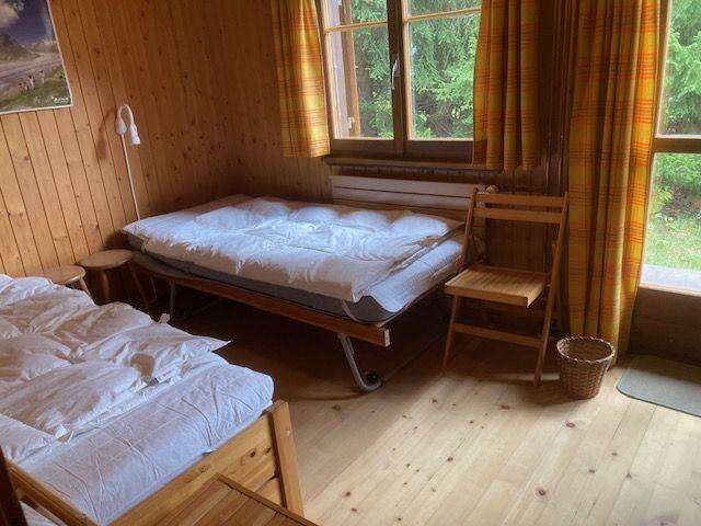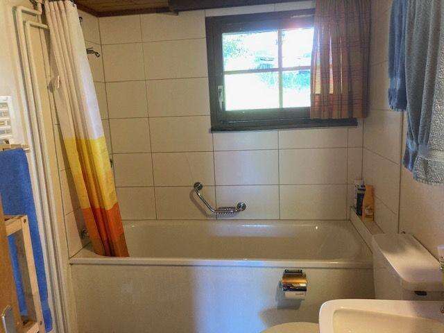 Einrichtung Untergeschoss: 4 Schlafzimmer (8 Einzelbetten), schlichtes Badezimmer mit Badewanne
