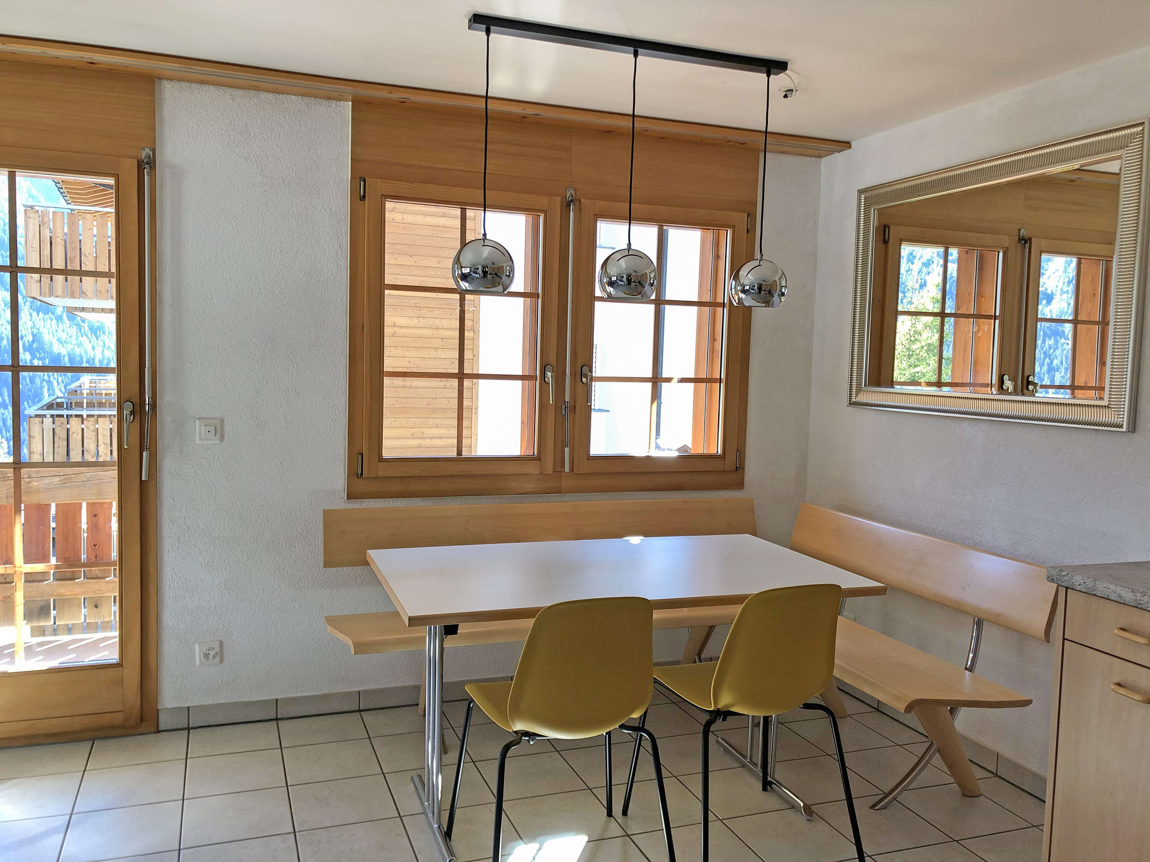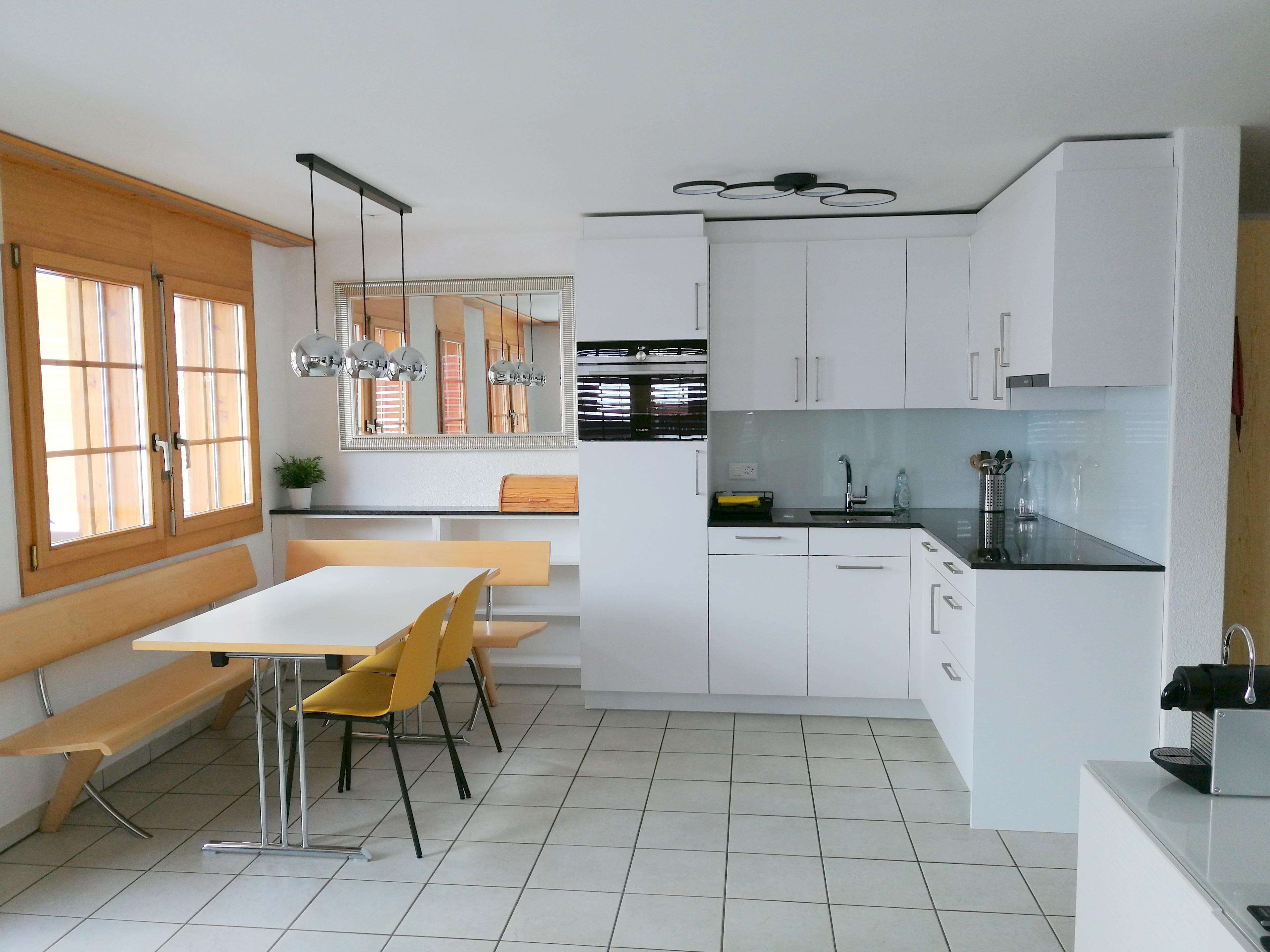 Die Wohnung hat eine familienfreundliche Einrichtung mit Fliessen- und Holzböden sowie Fussbodenheizung.